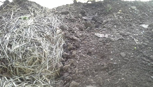 - จากนั้นให้ใส่ขี้วัวทับความหนาประมาณ 20-30 เซนติเมตร เกลี่ยให้ทั่วทั้งบ่อเลี้ยง 1 บ่อใช้ขี้วัวประมาณ 100 กระสอบครับ