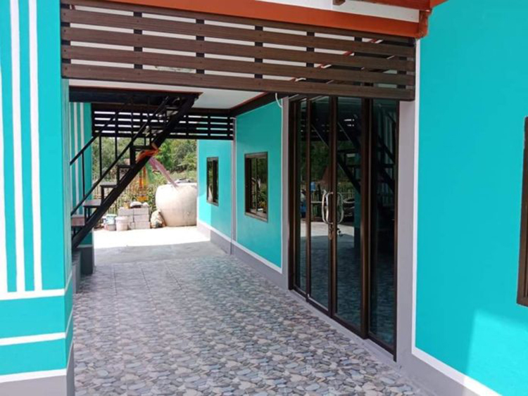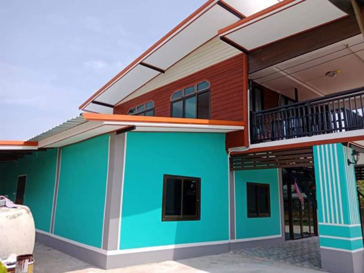 หลังจากทำการรีโนเวทเสร็จ ซึ่งไอเดียการรีโนเวทบ้านเก่าอายุหลายสิบปี เพิ่มมีการเพิ่มสีสันเข้าไป ผนังแบบไม้สีน้ำตาลผสมไม้เก่าและใหม่ และ ชั้นล่างเป็นผนังปูนฉาบเรียบโทนสีฟ้า