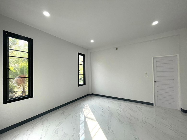 บ้านหลังนี้มีเพียงชั้นเดียว เป็นอีกหนึ่งหลังที่สร้างมาด้วยสไตล์โมเดิร์น ฟังก์ชันของบ้าน 2 ห้องนอน 2 ห้องน้ำ 1 ห้องโถง 1 ห้องครัว เฉลียงระเบียง และจบด้วยงบก่อสร้าง 1,45xx,xxx บาท